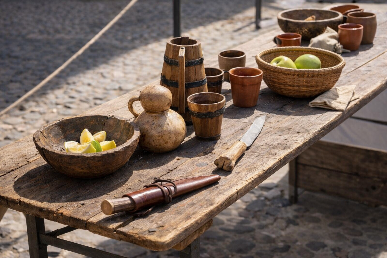 В средневековой Европе еду подавали в общих сосудах. Несколько человек пользовались одной миской, а хлеб нередко заменял подставку. Отдельная тарелка для каждого участника трапезы долгое время считалась избыточной. В этом контексте деревянная посуда воспринималась как практичное и универсальное решение. Дерево легко поддавалось обработке, позволяло создавать прочные формы и выдерживало ежедневную нагрузку.