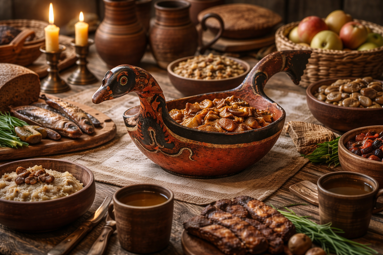 Новгородские раскопки дают особенно наглядный материал. В слоях XI–XIV веков регулярно находят деревянные миски, чаши, ложки и ковши. Их формы стандартизированы, что говорит о массовом использовании. Исследователи отмечают, что такие предметы встречаются как в зажиточных усадьбах, так и в более скромных дворах. Это подтверждает, что деревянная посуда была общей основой стола вне зависимости от социального статуса.