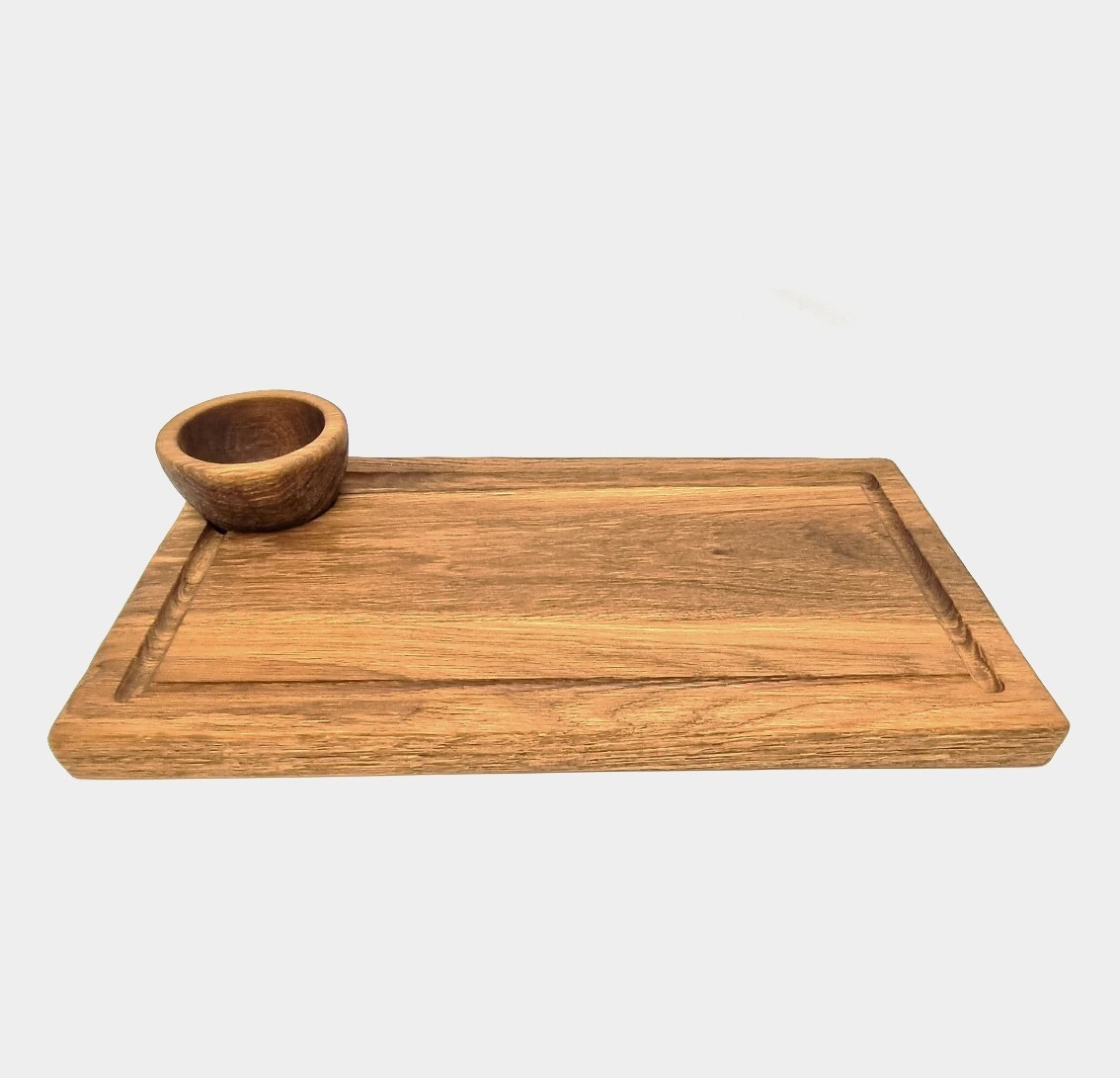 Доска для подачи c соусником (D=90мм, H=50мм);дуб;H=25,L=400,B=220мм