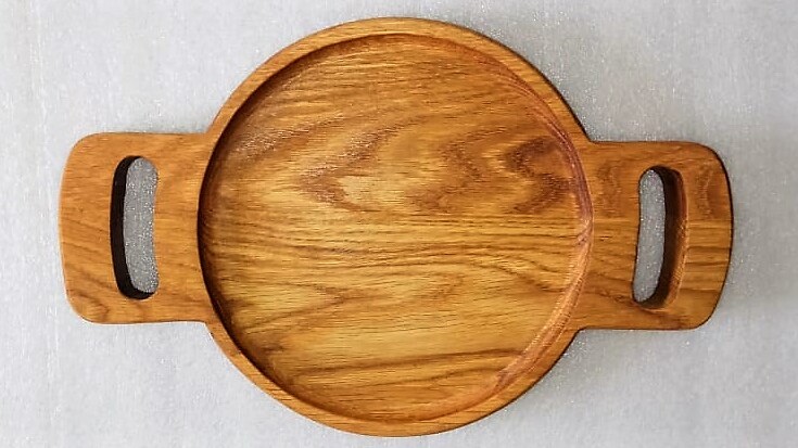 Доска для подачи круглая с ручками;дуб; D=200, H=25мм.