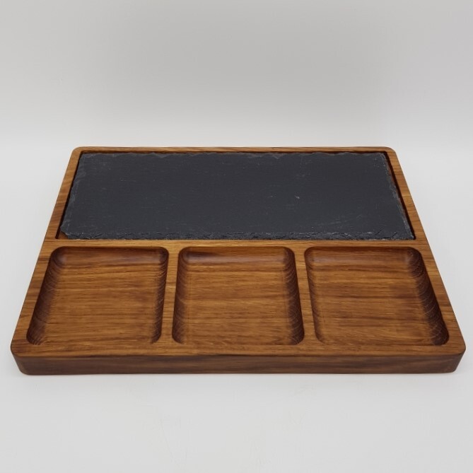 Менажница "Нова" прямоугольная; дуб; 4 секций; вставка из натурального сланца; H=25,L=320,B=240мм