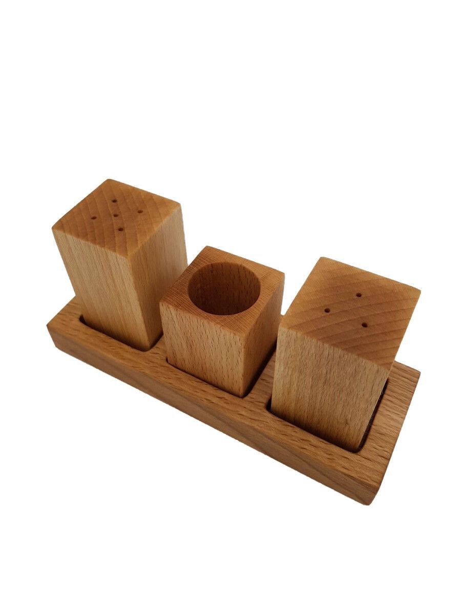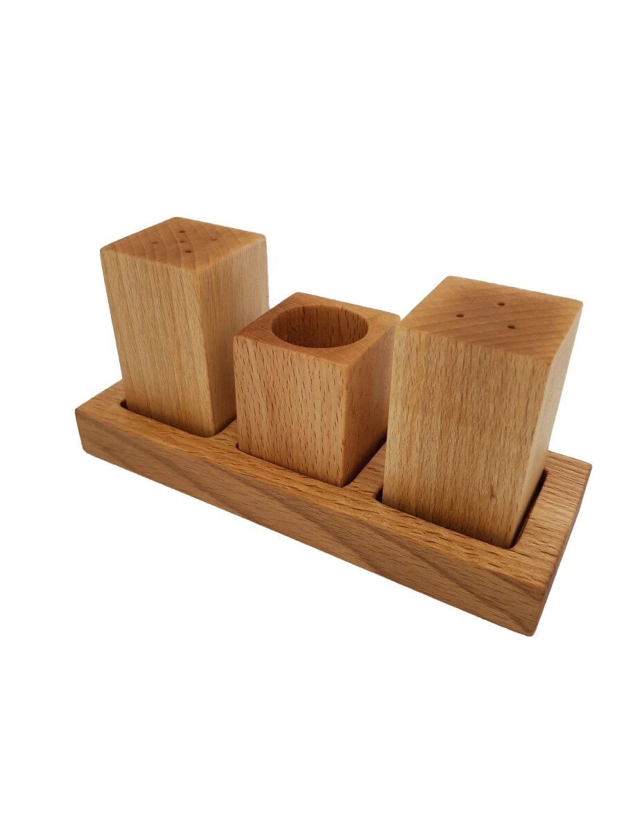 В комплект набора входит солонка, перечница и стаканчик для зубочисток. Грубый и изящный дизайн в стиле рустик позволит вам и вашим гостям приблизиться к природе, этому же поспособствует приятный аромат, который древесина бука придаст специям. Кажется, что это лишь незначительный аксессуар, но не спешите недооценивать наш набор, ведь как говорил Рей Брэдбери: «…мелкие радости куда важнее крупных».