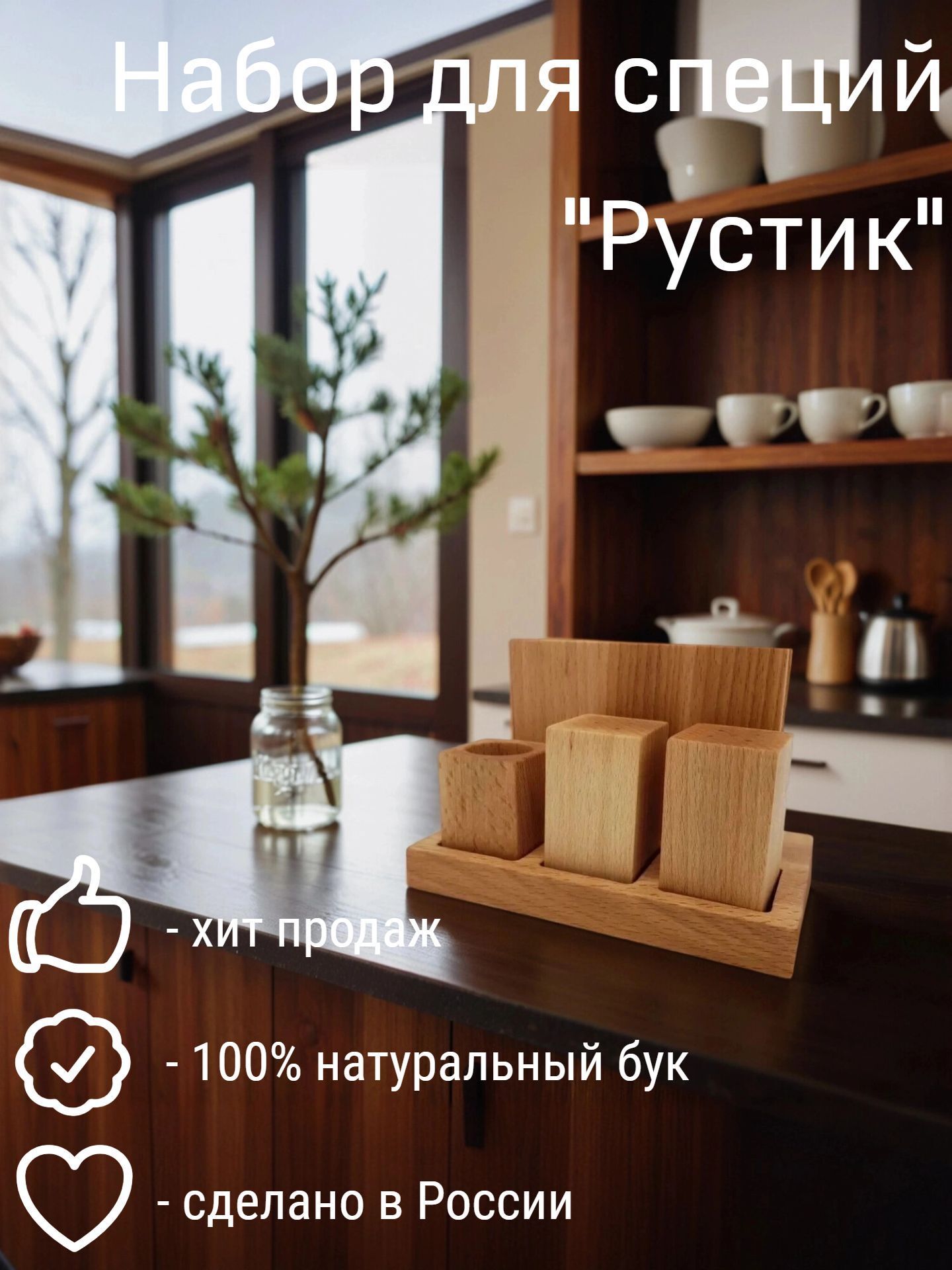 В комплект набора входит солонка, перечница, контейнер для зубочисток и держательница для салфеток. Грубый и изящный дизайн в стиле рустик позволит вам и вашим гостям приблизиться к природе, этому же поспособствует приятный аромат, который древесина бука придаст специям. Кажется, что это лишь незначительный аксессуар, но не спешите недооценивать наш набор, ведь как говорил Рей Брэдбери: «…мелкие радости куда важнее крупных».