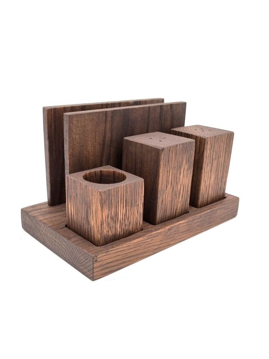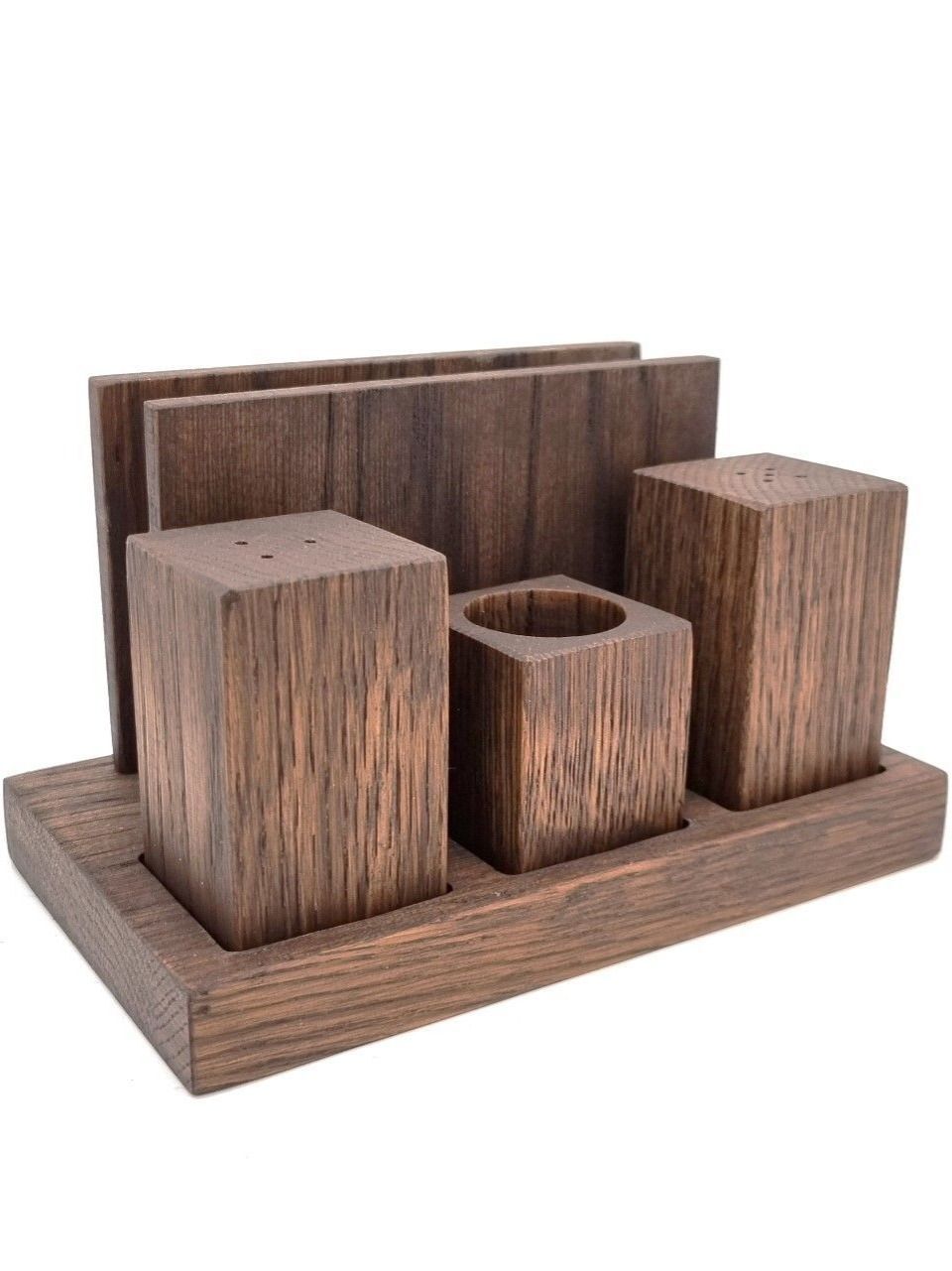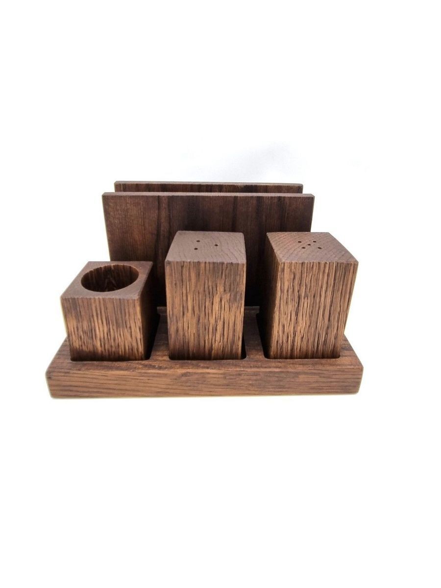 Подставка с салфетницей, солонка, перечница, стаканчик для зубочисток