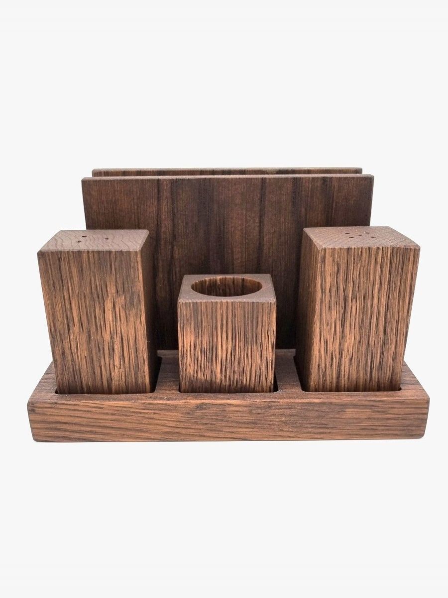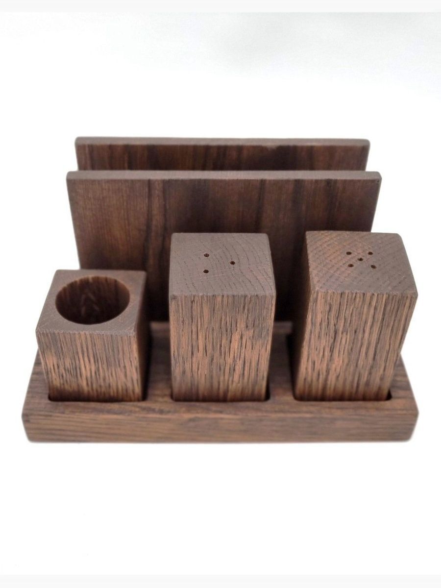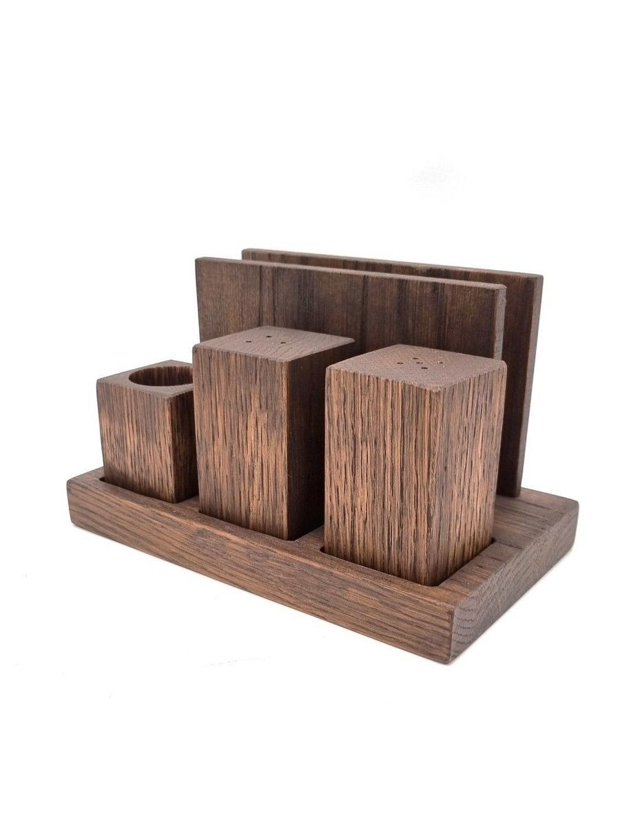 Подставка с салфетницей, солонка, перечница, стаканчик для зубочисток