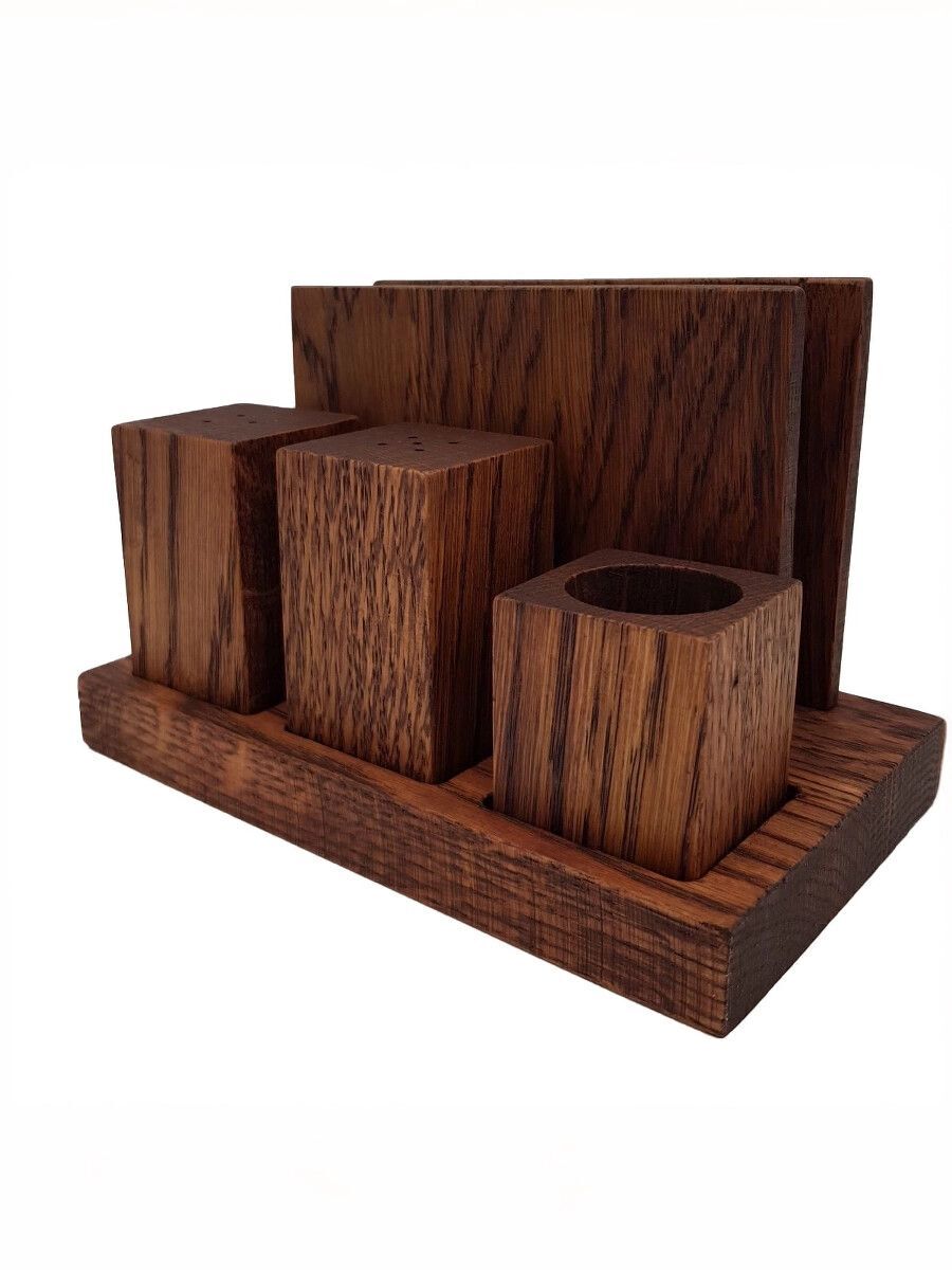 Подставка с салфетницей, солонка, перечница, стаканчик для зубочисток