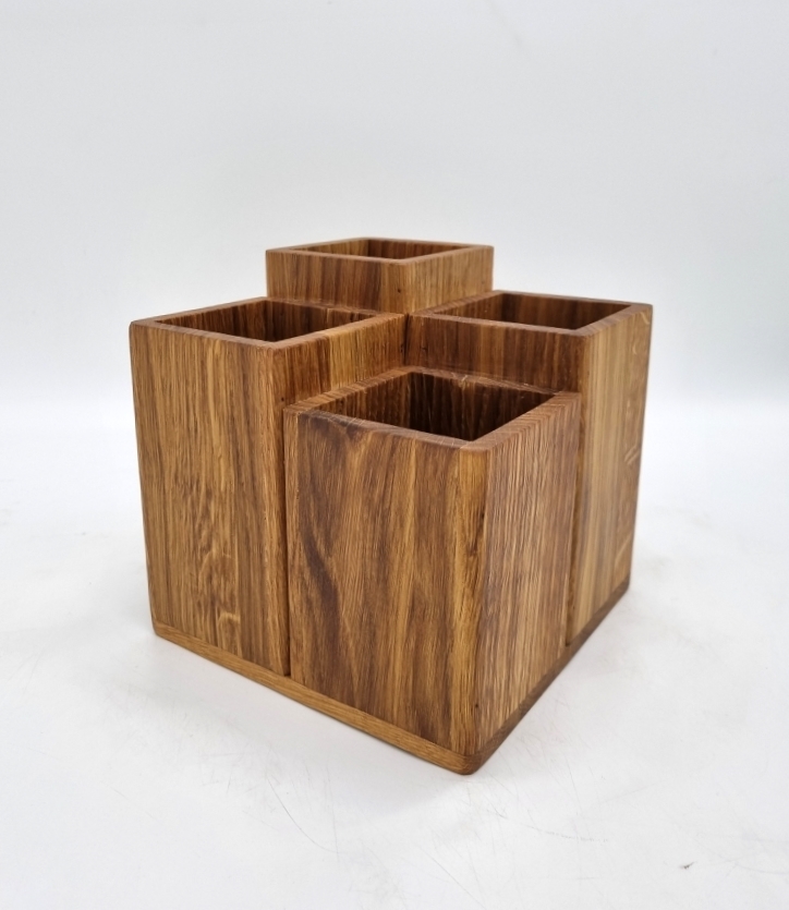 Изготовлен из натурального дуба, что обеспечивает высокую прочность и долговечность изделия. Подойдет как для кухни, так и для столовой зоны, гармонично вписываясь в интерьер благодаря природному рисунку древесины. Удобная ячейковая конструкция позволяет аккуратно хранить ложки, вилки и ножи, поддерживая порядок и чистоту на кухне. Органайзер для столовых приборов, дуб, H=148, L=150, B=150мм.